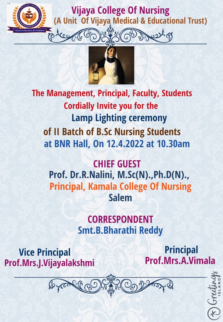 The Vijaya College of Nursing committed to provide the student’s nurses with academic excellence and professional excellence with the motto “Selfless Service for A Healthy Society.